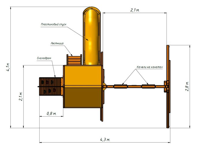 - - длина ската горки 2650 мм;