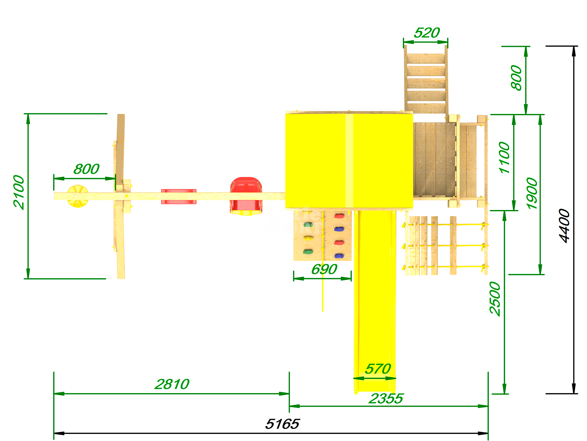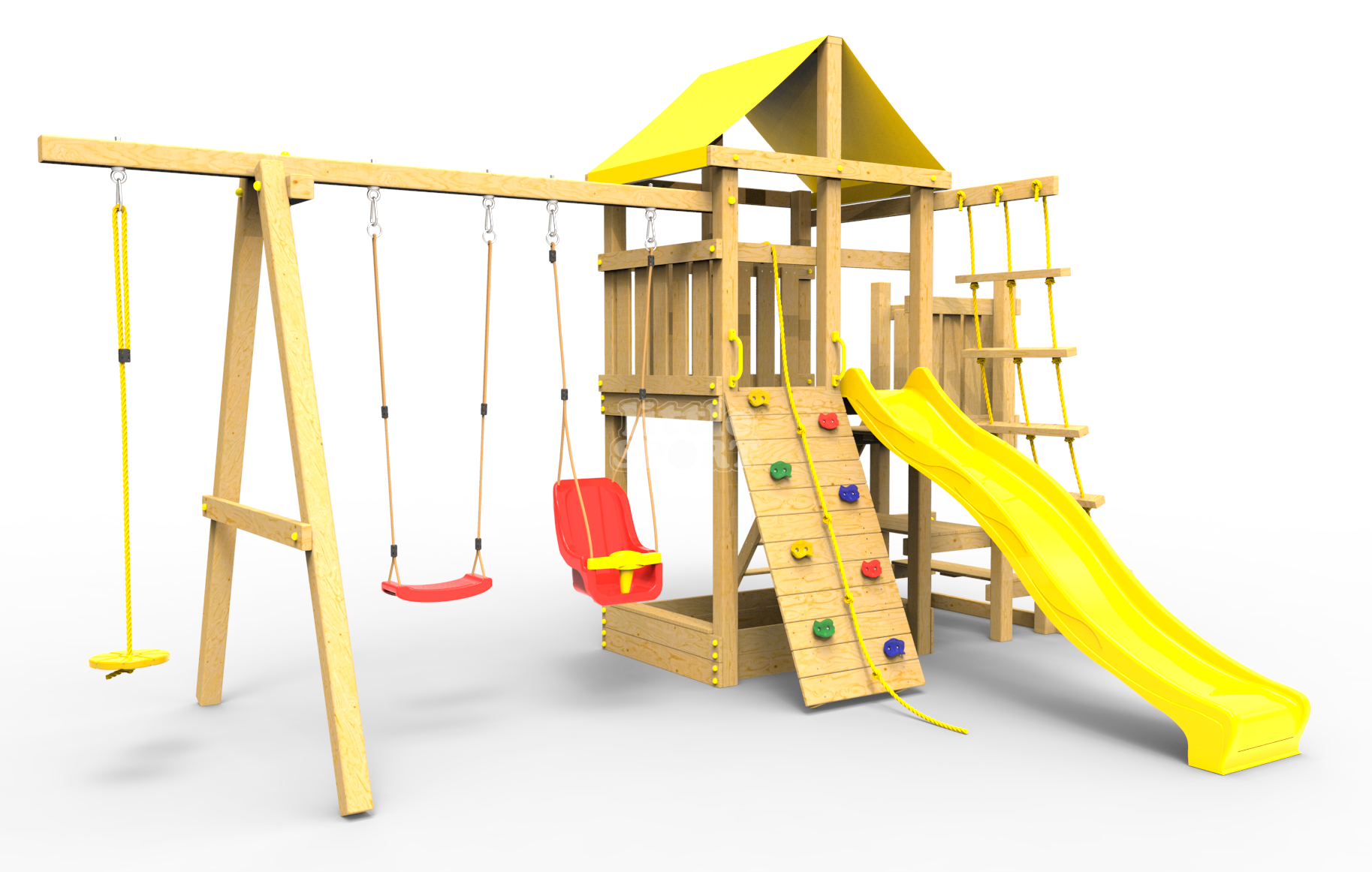 Обращаем Ваше внимание, что фактический цвет детской площадки может отличаться от представленных фото на сайте. Специфика окраски нетоксичными пропитками и красителями допускает отклонения в цветовой гамме отгружаемых изделий. Также обратите внимание, что фактический цвет может отличаться из-за цветопередачи устройства на котором Вы смотрите фото.