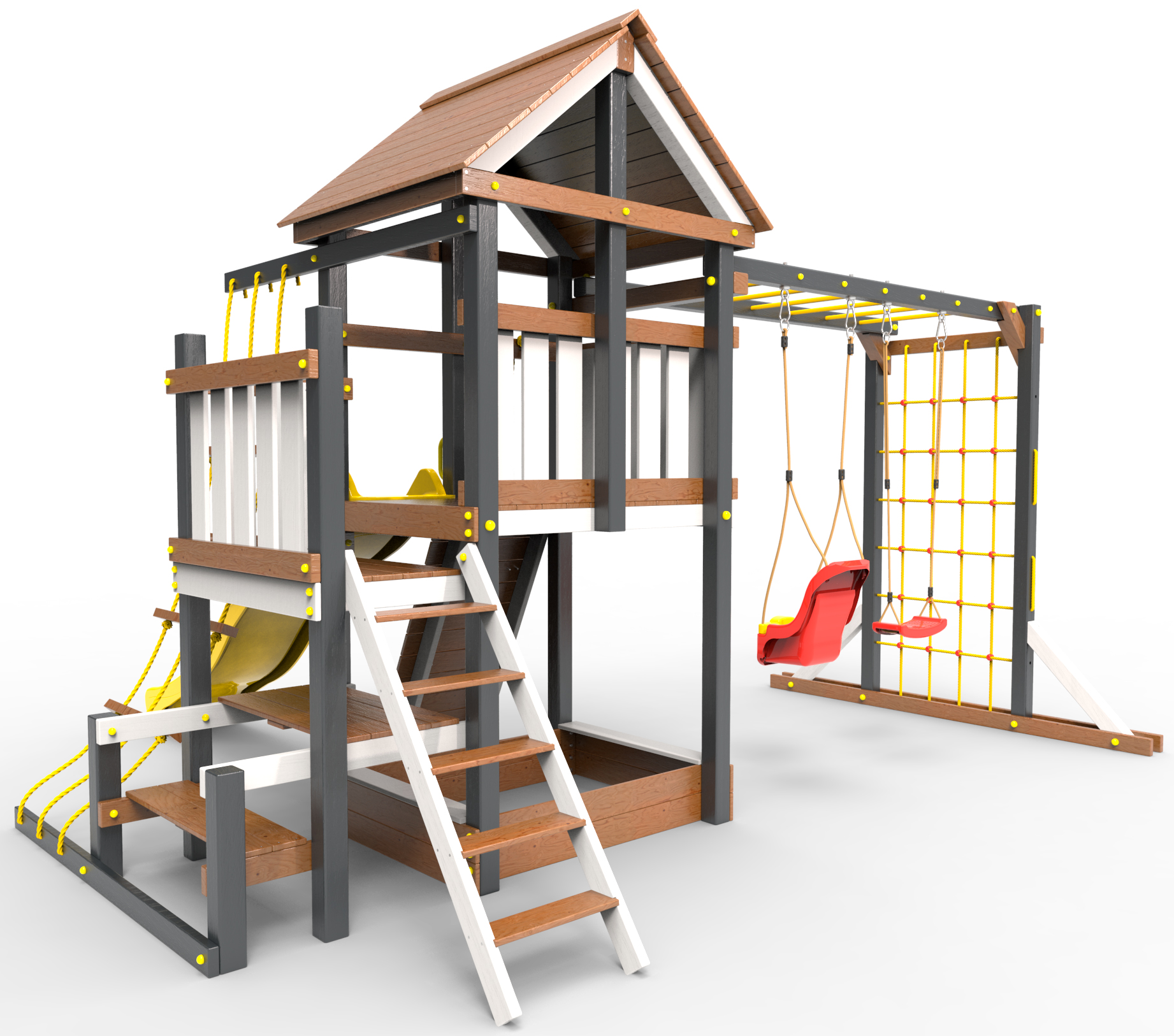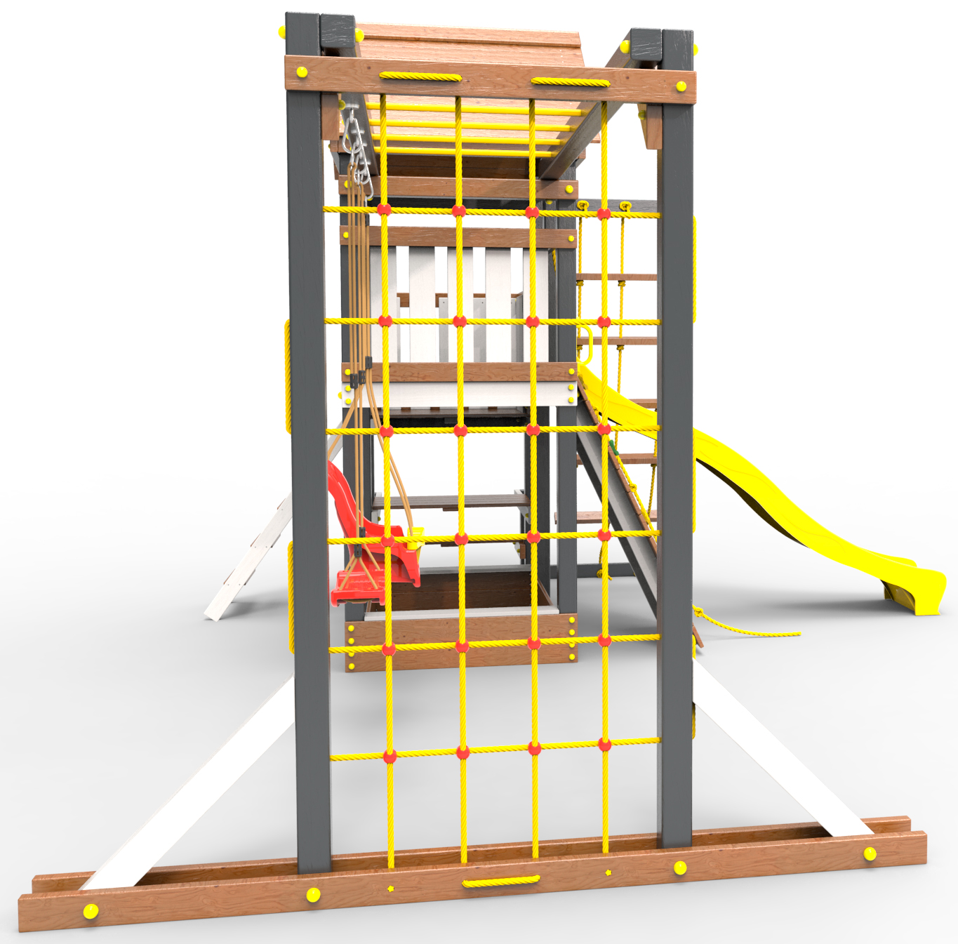 Обращаем Ваше внимание, что фактический цвет детской площадки может отличаться от представленных фото на сайте. Специфика окраски нетоксичными пропитками и красителями допускает отклонения в цветовой гамме отгружаемых изделий. Также обратите внимание, что фактический цвет может отличаться из-за цветопередачи устройства на котором Вы смотрите фото.