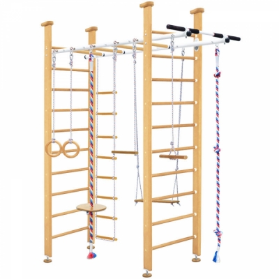 Комплектация: турник лиана, вер.лестница, качель, трапеция, кольца, тарзанка, канат,