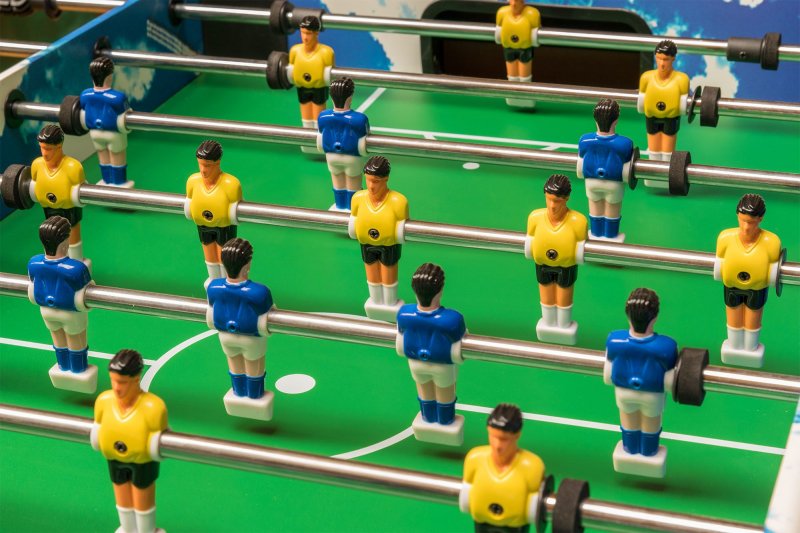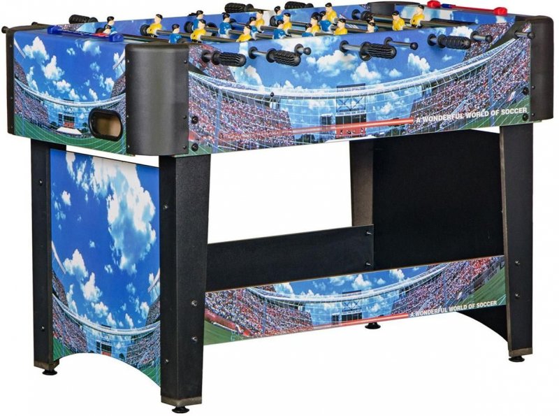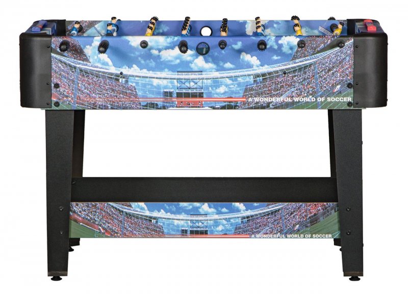 Этот кикер идеально подойдет для веселого и интересного времяпровождения. Яркий дизайн стола, выполненный в классических футбольных цветах, украсит интерьер любой игровой комнаты.