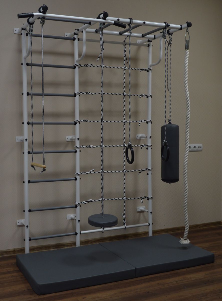 Канат, трапеция, кольца гимнастические, сетка для лазания, тарзанка, детская груша, мат гимнастический 1,6*0,66 кож/зам.