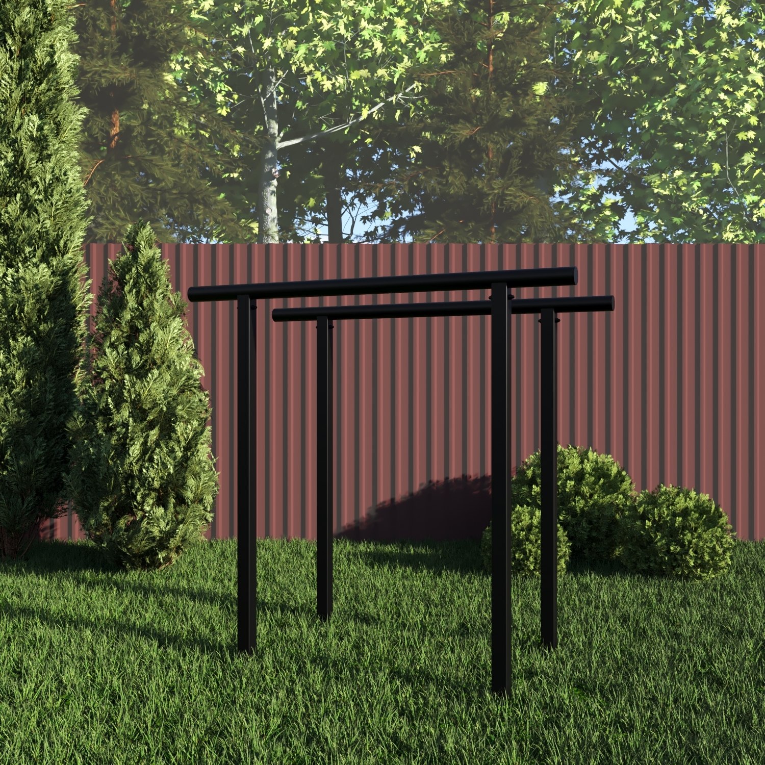 Уличные брусья Sv Sport изготовлены из профильной трубы 60 х 60 х 3 мм и круглой стальной трубы d 33,5 мм и толщиной 2,8 мм. Окрашены качественной, импортной порошковой краской в 2 этапа, устойчивой к коррозии, истиранию и температурным перепадам. Все торцы, болты, гайки заглушены пластиковыми заглушками. Устанавливаются стойки путем бетонировки на глубину не менее 600 мм.